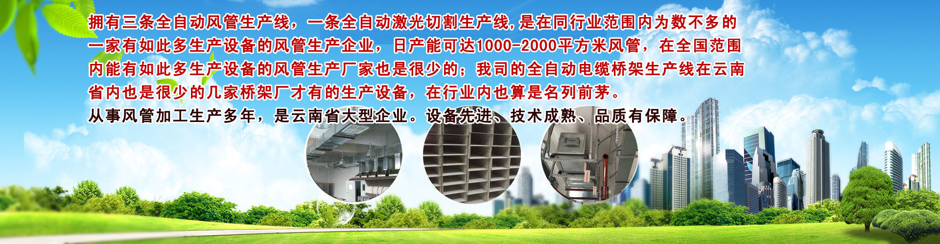 云南大军暖通设备工E有限公司是一家专业生产通风道、通风讑֤、电~桥架的风管加工厂家。云南大军暖通专业从事:风管加工、通风道、通风讑֤Q风机、风阀、风口、消声器、防火阀Q、电~桥架、PP风管、镀锌板、通风净化系l的Ҏ设计、销售选型、施工调试、售后保L务? 云南大军暖通设备工E有限公司成立于2016q?2?2日,现已拥有三条全自动风生产线Q一条全自动Ȁ光切割生产线,是在同行业范围内为数不多的一家有如此多生产设备的风管生企业Q日产能可达1000-2000qxc风,在全国范围内能有如此多生产设备的风管生厂家也是很少的;我司的全自动늼桥架生U在云南省内也是很少的几家桥架厂才有的生产设备,在行业内也算是名列前茅。设备先q、技术成熟、品质有保障。可为广大客h供更快的生速度Q降低生产成本,提高工作效率Q羃短施工周期? 公司自成立以来,׃直把成ؓ一家积淀深厚的百q老店作ؓq求目标Q努力汇聚业界精英,实时汲取国内外先q的讑֤、材料、技术、信息及理Ҏ和经验,为客h供优质、适用、经的产品、服务及一站式解决ҎQ企业在激烈的市场竞争中始l保持竞争力和敏锐度Q在普遍q求“大而强”的时代里,我们却选择了追求“小而美”。因Z注,所以专?-从而以口碑在行业内牢牢获取了一席之地?